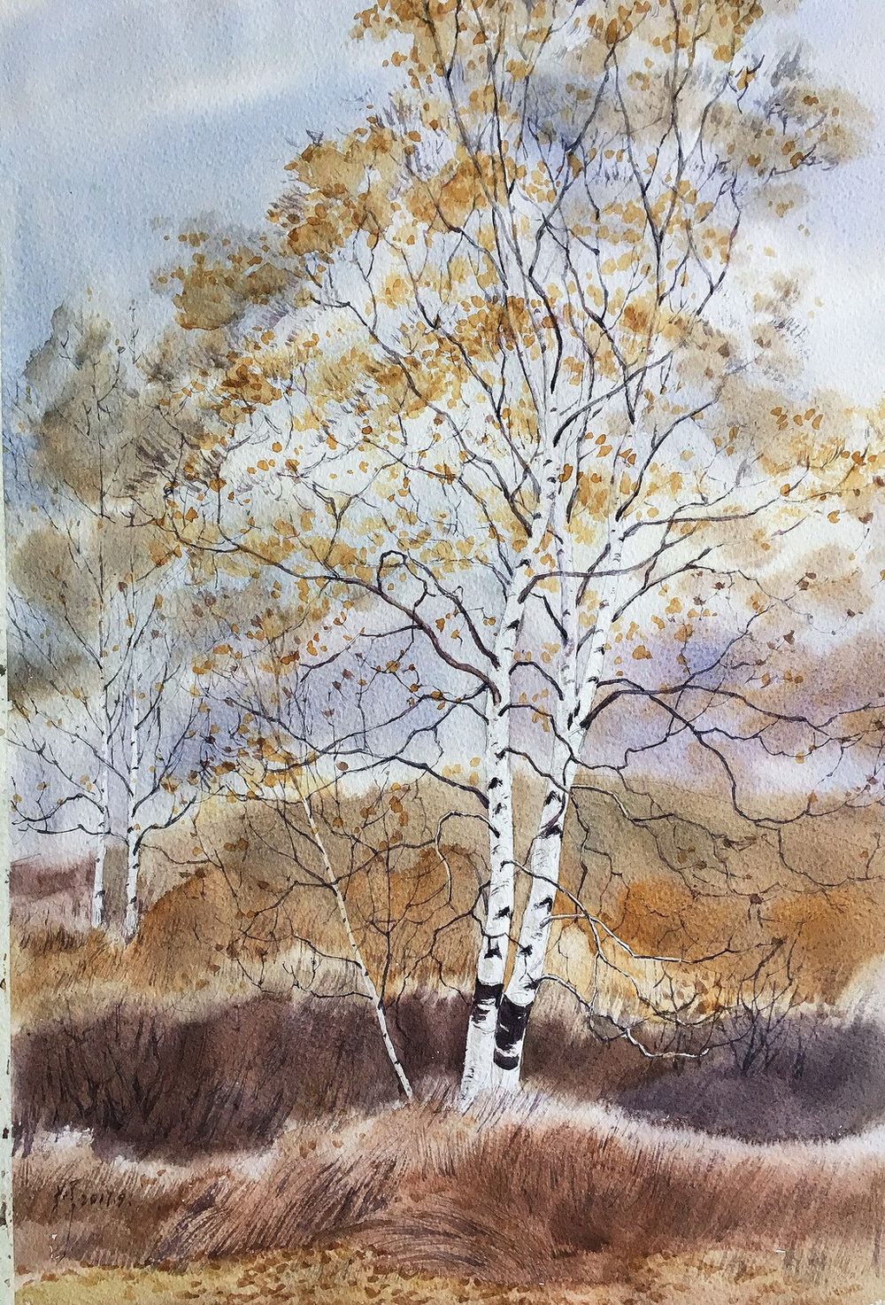 | 作品名称 | 《白桦树写生》50x34cm 2017年_副本 |